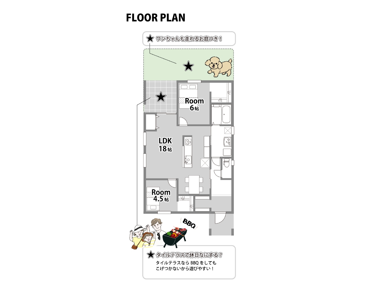 4つのコンセプト仕様が一目でわかるようになっているので、その場でプランを想像しやすくなっています。