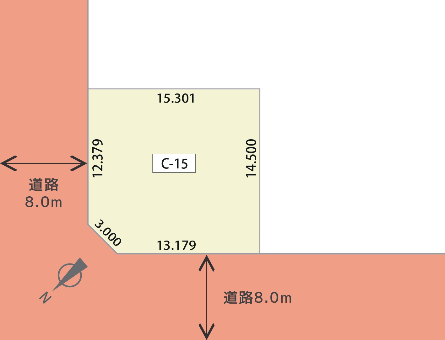 北西側:公道幅員8.0m、北東側:公道幅員8.0m